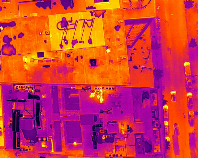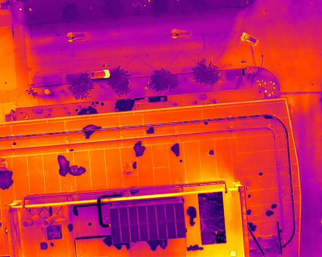 Use of thermographic photography to identify damage to chimneys and electric transmission lines.